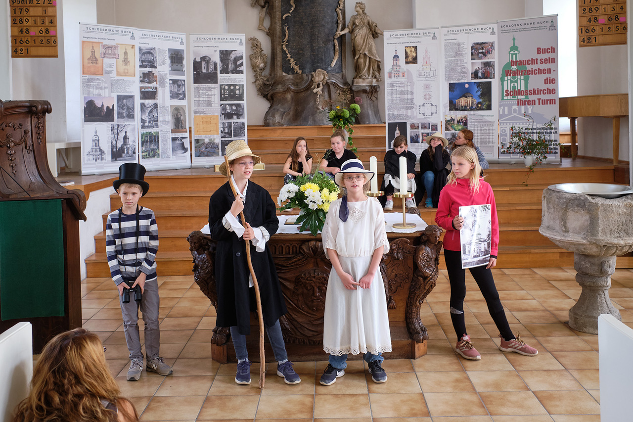 Mädchen und Jungen der 6. Klasse der Evangelischen Schule Buch erforschten die Spuren des Dichters Theodor Fontane in Buch. Einzelne Stationen, die Fontane literarisch beschrieben hat, erarbeiteten die Sechstklässler szenisch in einem Theaterspiel.