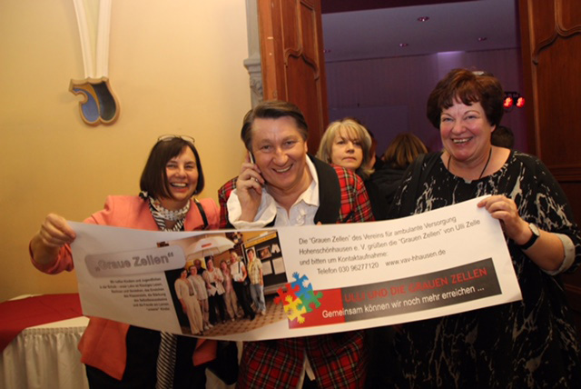 Auch die „Grauen Zellen“ des Vereins für ambulante Versorgung Hohenschönhausen e.V. (vav) ließen es sich nicht nehmen, die Politiker hautnah zu Sach- und Fachthemen zu befragen und den „Grauen Zellen“ von Ulli Zelle einen Besuch abzustatten. Mit einem Banner machten sie auf sich aufmerksam und boten an, ein gemeinsames Projekt im Sinne von „Gesicht zeigen – Promis für Bildung“ zu initiieren. Die „Grauen Zellen“ des vav unterstützen Kinder in Grundschulklassen, um den Anschluss und Abschluss des jeweiligen Klassenziels zu schaffen. Die Idee der „Grauen Zellen“ des vav: gemeinsam mit den „Grauen Zellen“ von Ulli Zelle mehr Menschen zu aktivieren, die sich im Projekt ehrenamtlich engagieren – denn langsam hat das Projekt nach fünf Jahren stabiler Angebote „Nachwuchssorgen“ aus dem Kreise der 55+ Generation. Vielleicht klappt es ja!