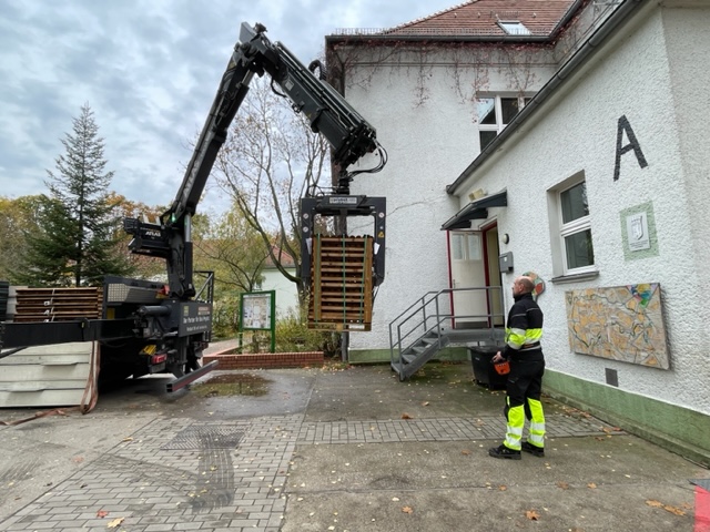 Die Anlieferung hat nun leider doch eine ganze Weile gedauert. Am Freitag, dem 03.11.2023 war dann Liefertag. Die zehn Hochbeete sind nun vor Ort und der zweite Teil die Anlieferung – und zwar Erde war auch schon in Aussicht gestellt. Die Erde wurde am Dienstag, dem 07.11.2023 – angeliefert.